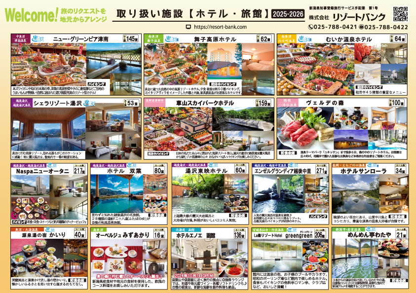 リゾートバンクの取扱施設一覧及び企画チラシの一例です。